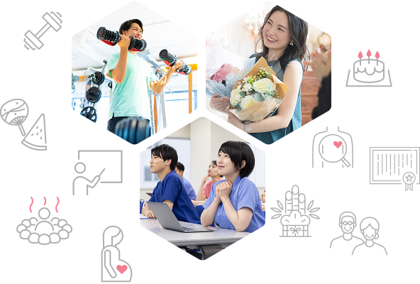 T&Tグループでは、社会保険などの基本的な制度に加えて、誕生月休暇・スポーツジム補助・研修制度・パワーチャージ休暇など、働く毎日をより豊かにするためのサポートをそろえています。